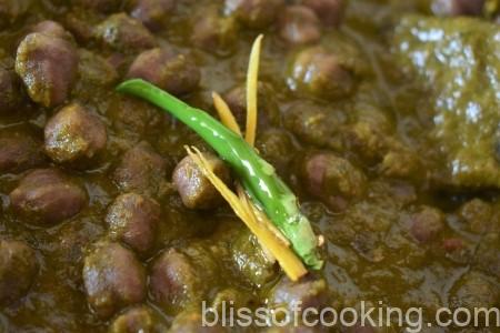 Chole Masala with Palak Gravy (Chick Pea in Spinach Curry) is a delicious dish. This dish is another version of Chole recipe. Chole Palak Curry is made in North Indian style and goes very well with Bhature, Roti, Rice, Naan or Paratha. Palak Chole is a main course dish packed with lots of nutrition. This extraordinarily creamy dish is made creamy by adding palak puree. Chole Masala with Palak Gravy (Chick Pea in Spinach Curry) has best of texture and flavours. It tastes great inspite of having few spices added to it.