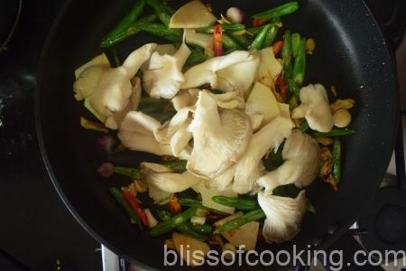This quick and easy Stir-fried Bamboo Shoot with Oyster Mushroom recipe is a delicious main course dish. Bamboo shoots are quite seasonal and are available in India during the monsoon season. The new and tender clumps are harvested within three weeks or else they become too hard to be used as food. These tender shoots are canned and are available all through the year.