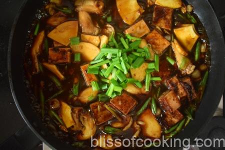 This is a simple recipe for Stir-fried Bamboo Shoots with Oyster Mushrooms. I have steamed the shoots before using them for this recipe. This dish has a lot of texture – crunch from the bamboo shoots, the softness of the tofu and chewiness from the mushrooms. Adjust the amount of seasoning ingredients to taste and I am sure you will love it!