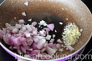 • Heat oil in a pan; add garlic, onion and saute for 2 minutes.