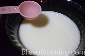 - Mix milk and water, add to the flour and make a smooth batter.