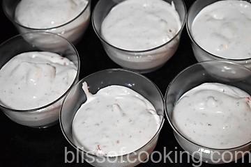 - Add rest of the strawberry puree to the cream mix and fill the cups to make a second layer.