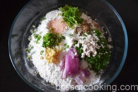 • Chop all the vegetables finely so that the dough can hold them together easily.
