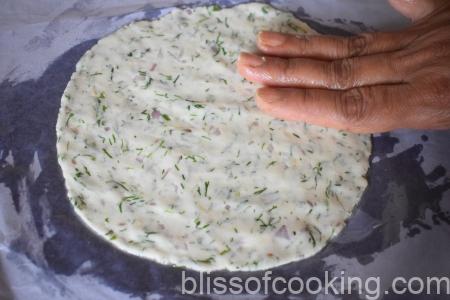 The method of making these delicious rotis is also quite easy. You will need either plantain leaves, a moist muslin cloth or a soft cotton cloth, greased butter paper or a plastic sheet. Unlike other chapatis or rotis, akki rotis aren’t rolled with a pin but patted with hands instead.