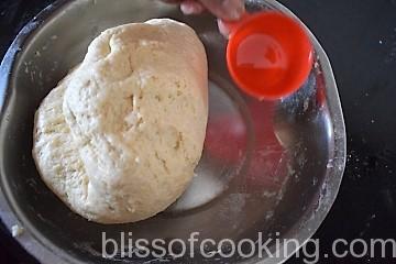 - Apply rest of the oil, cover the dough and let it rest for about 2 hours.