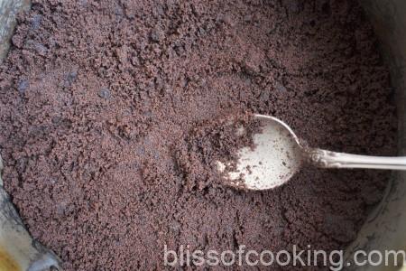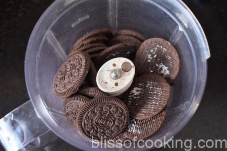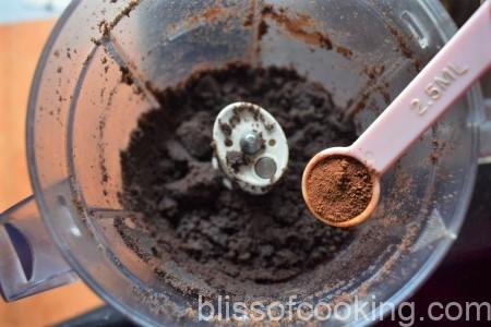 - Transfer the Oreo biscuits, coffee powder in a blender and make a powder. Now add the melted butter and blend again.