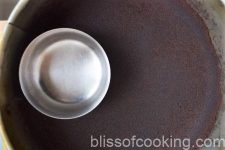 Making this tart requires very little effort. The crust is made with my all-time favourite Oreo biscuit. I added a pinch of espresso powder (intensely dark and concentrated instant coffee) and some butter to bind the crust. For those of you who do not have an oven, you will be happy to know that the crust does not need to be baked, only requires a little refrigeration.