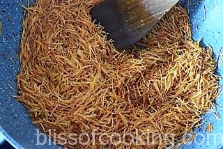- Roast the vermicelli in ½ teaspoon oil and set aside.