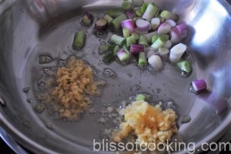 - Saute the garlic and ginger for a few seconds only.