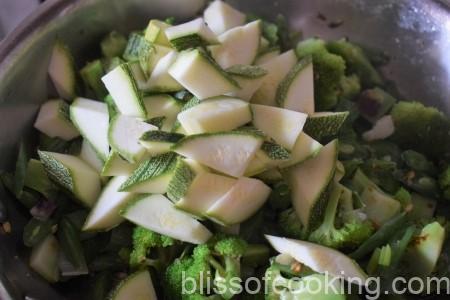 - Add the zucchini and toss for a minute.