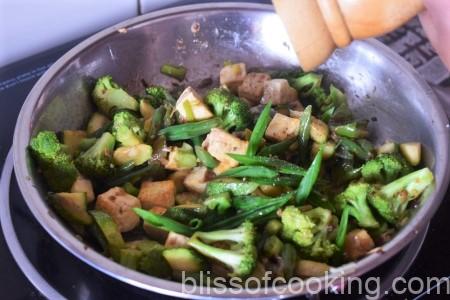 - Add the tofu and toss for a minute.