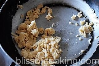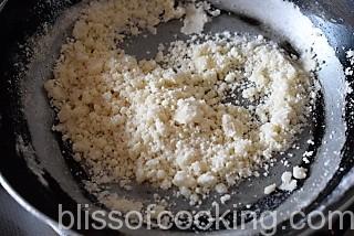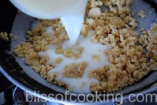 - Heat a sauce pan; add butter and flour and saute till aromatic.