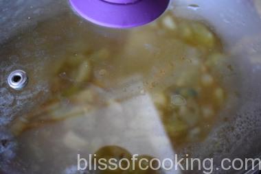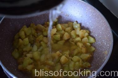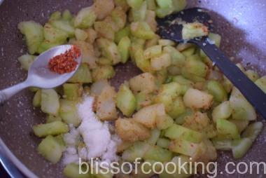 - Add ¼ cup of water, cover and cook till the cucumber is half cooked.